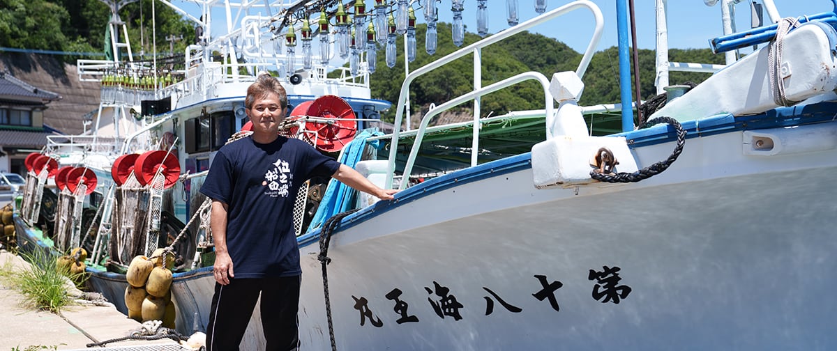 位之端船団「第十八海王丸」は、対馬東海岸の小さな漁港・位之端(いのはし)を拠点に、イカ漁を営みながら加工品を作っています。